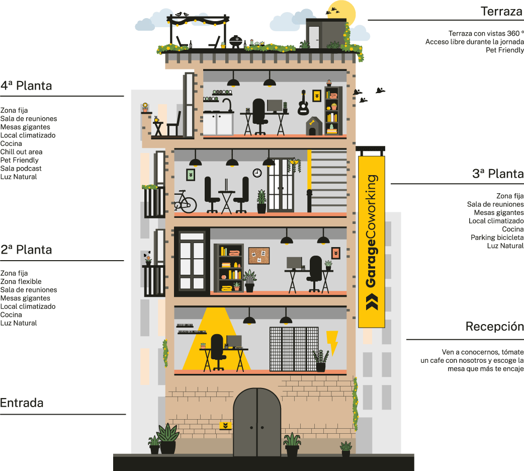Garage Coworking Valencia centro, diferente y familiar para freelancers y profesionales.